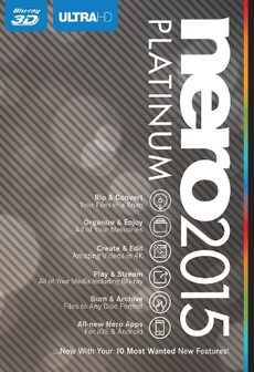 Nero 2015 Platinum is the award-winning suite to burn, rip, convert and manage all your videos and music to discs, TVs, smartphones and tablets. And with our new apps, you can master your multimedia, burn over the air and improve your Nero skills, too. It includes the full-featured Hollywood-grade 4K video editing suite Nero Video 2015 as well as all its premium additions, such as high quality video enhancement tools (such as Tilt-Shift Effects, Retro Film Effects and many more), new font styles and motion text effects, and allows you to burn your files to Blu-ray discs, DVDs and CDs with world‘s best burning engine. Superior disc and file playback including Blu-ray 3D discs is built-in as well as streaming of virtually any file to your iOS devices, Android® devices and all compatible TVs. The new support for “Places” in Nero MediaHome allows you to tag and browse your videos and photos based on where they were taken.