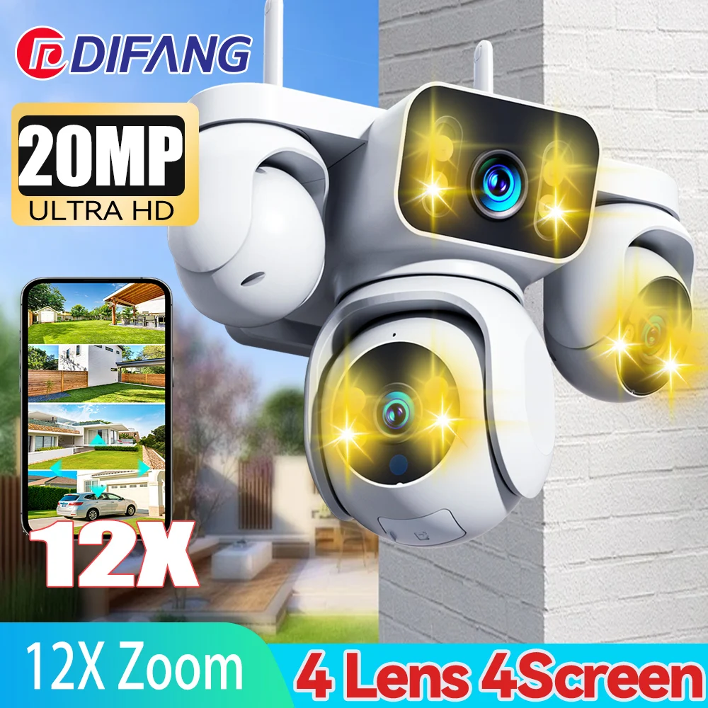 New 12X Zoom Four Screen 20MP WiFi Camera Four Lens 10K Video Surveillance Waterproof Auto Tracking Security Protection IP Cam