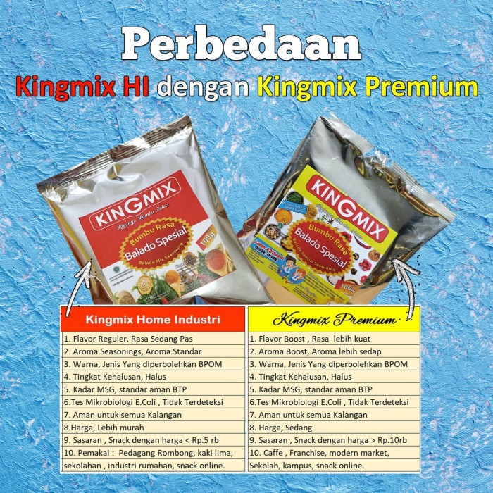Kingmix terjaga kualitasnya dan aman dikonsumsi oleh anak-anak. banyak digunakan oleh industri/pabrik chiki,snack yang ada di mini market.