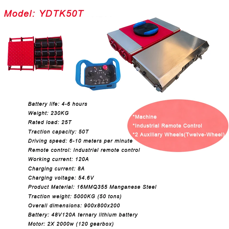 New Arrival Electric Moving Trolley Electric Carrying Roller Machine Moving Tank 20T-50T Straight Rotation Freewheel Tank