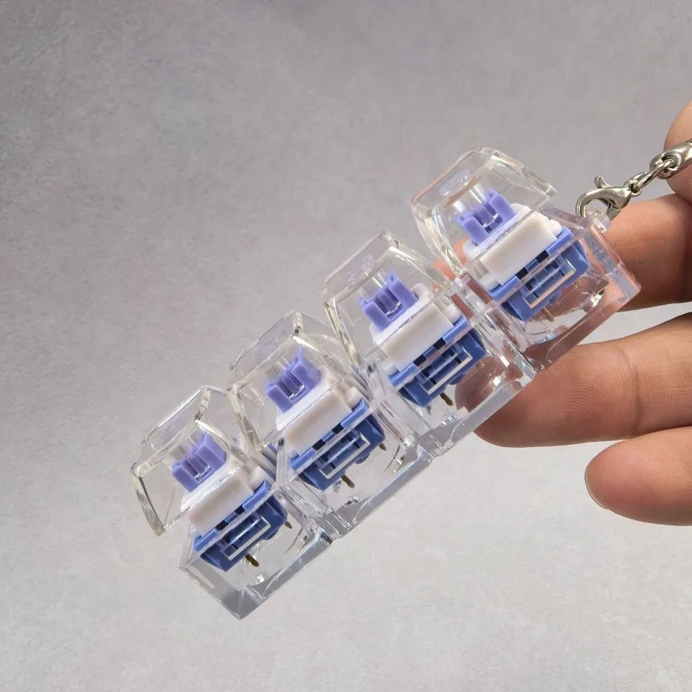 New DIY Keyboard Fidget Keychain Keys Button Keycap Finger Keyboard Cap with Light 4Keys Clicker Adult