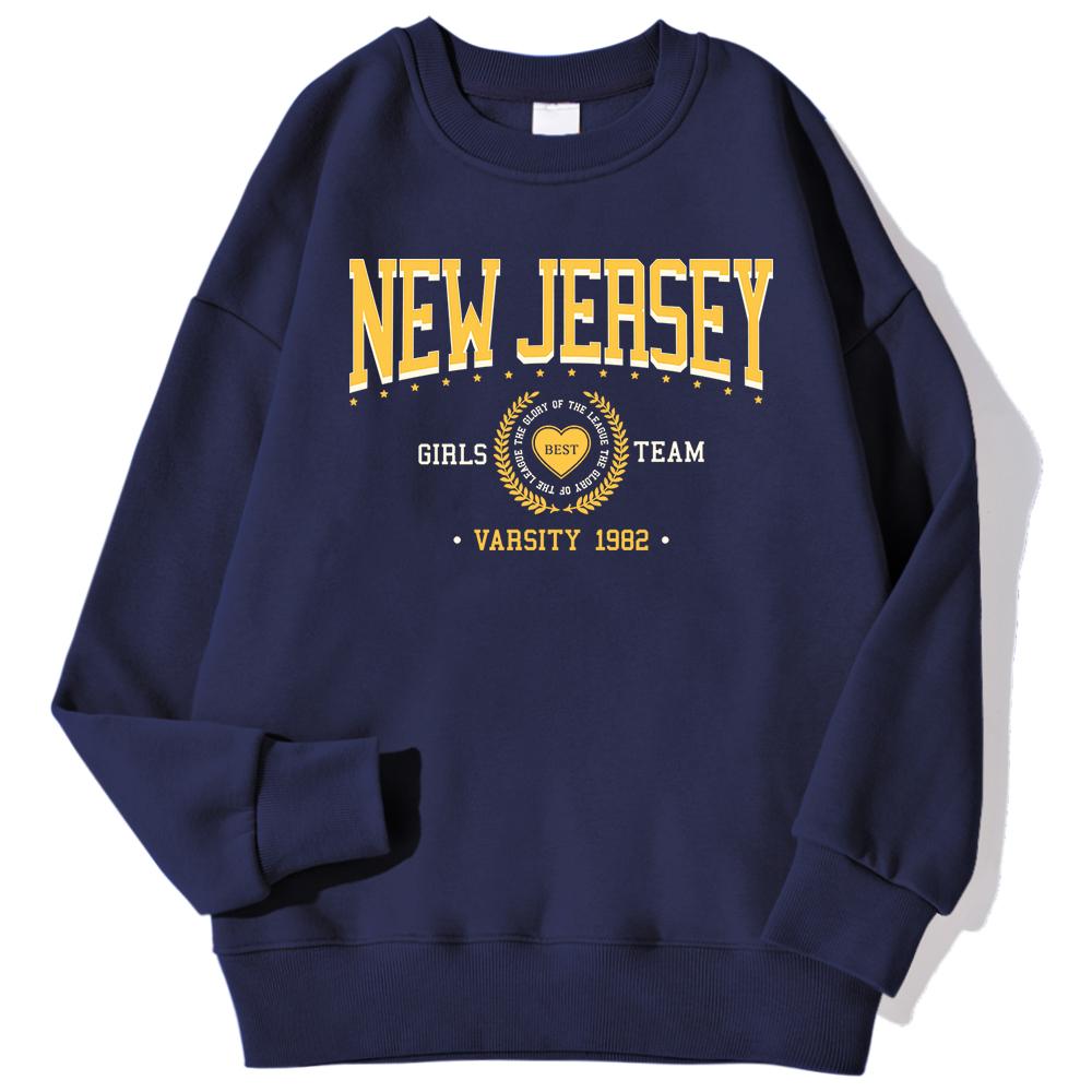 New Jersey Team Varsity 1982 Printed Man Толстовки Осенние Теплые Повседневные Толстовки Harajuku Свободный Пуловер Модная Флисовая Одежда 3XL темно-синий