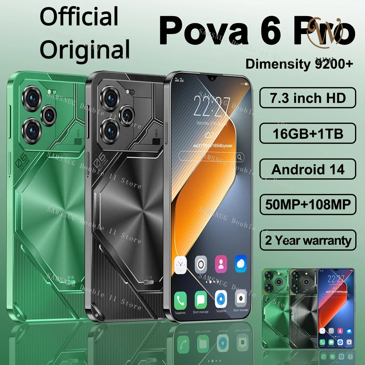 New Original Pova 6 Pro Smartphone Global Snapdragon 8 Gen 22GB+2TB 8000mAh 5G Android14 NFC E-SIM OTG Fingerprint Unlock, WiFi6