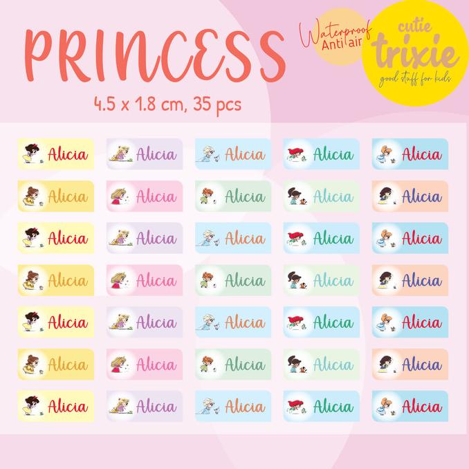 New Sticker Label Nama Anak Princess Chibi