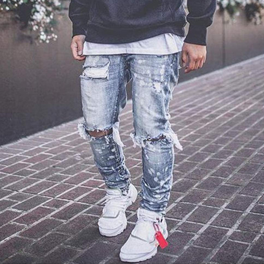 jeans,new style ripped paint feet jeans