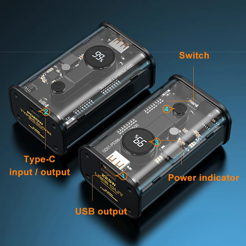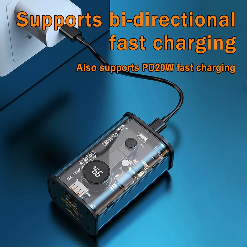 New10000mAh Transparent PowerBank PD20W Mini Portable Battery QC 22.5W Quick Charger for iPhone 8-14 Promax Samsung Huawe