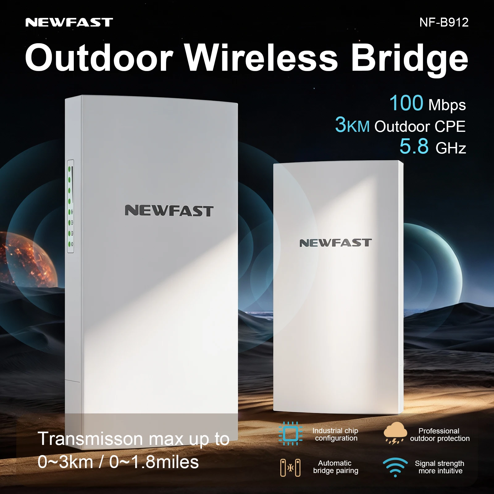 Newfast 2PCS 5.8GHz Wifi Bridge Outdoor CPE 3KM Long Range Wireless Repeater Extender Access Point AP WiFi Bridge Client Router