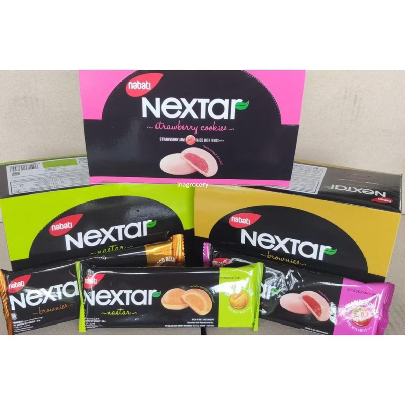 Produksi PT. Kaldu Nabati Sari - Bandung, perusahaan multi konsumen produk yg merajai pasar lokal khususnya jawa barat hingga terkenal se nusantara. Nabati sebenarnya sudah sangat merambah lini jualan yg beragam. Mulai dari snack yg utama hingga konsorsium pemilik brand snack sarat penghargaan bergensi nasional hingga jaringan resto. Dan salah satu produk yg mereka punya adalah Nextar. Brand makanan ringan berupa kue nastar lembut dgn berbagai rasa selai didalamnya. Kemasan kotak isi 3 pcs kue/bks x 10 bks dgn netto 42gr/bks. Ber BPOM dan Halal MUI
