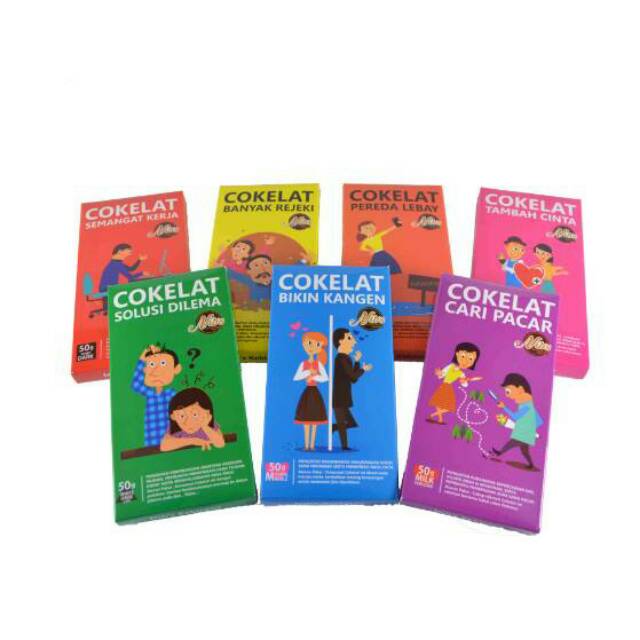 Produksi CV. Berkah Dahari - Bandung untuk PT. TAMA Coklat Indonesia - Garut yg terkenal sebagai produsen coklat Chocodot yg me-nasional. Menelurkan satu produk coklat yg lebih ekonomis namun tetep gaul..NIBS :). Ber tag line heboh untuk masing2 variannya dgn mengacu pada bahasa2 anak muda jaman kekinian ;). Untuk rasa? Gak kalah sama pendahulu2 yg telah memasuki pasar coklat Indonesia..enak. Tiap varian ber-basic 4 dasar coklat, yaitu Coklat, Coklat Putih, Dark Coklat, dan Coklat Susu. Terkombinasi dgn baik berbeda utk setiap variannya yg diklaim oleh produsen dapat menimbulkan rasa sesuai dgn nama masing2 variannya, netto @50gr Beratribut lengkap P-IRT dan HALAL MUI