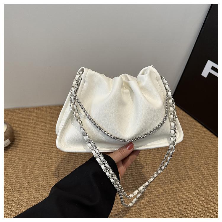 Niche плиссированная сумка подмышкой женская весна 2024 новая модная корейская ретро сумка-ведро универсальная цепочка, сумка через плечо белый