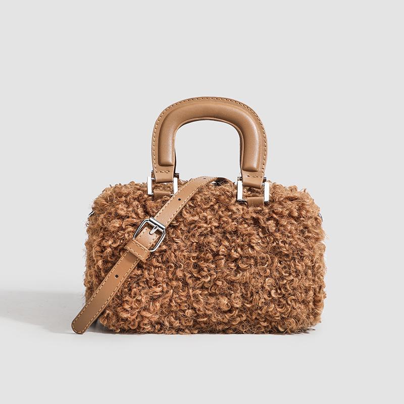 Niche Design Осень-зимняя мода с пушистым мехом ягненка Повседневная сумка-подушка на одно плечо через плечо коричневый