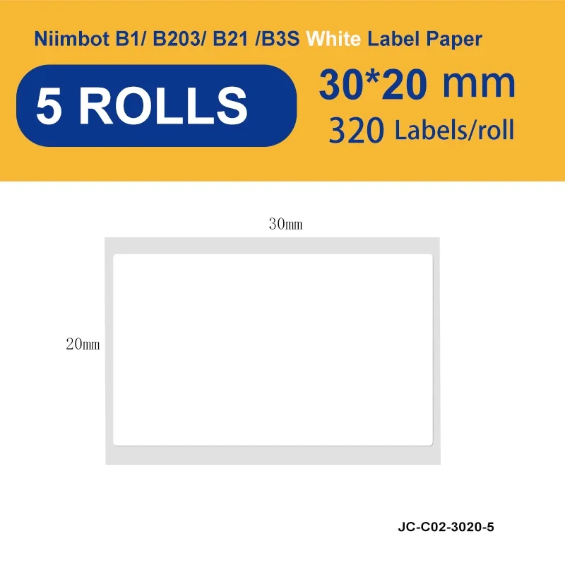 Niimbot 5 рулонов 30x20 мм 320 этикеток, термоэтикетки для принтеров B21 B1 B3S B203, автоматическая клейкая бумага для QR-кода