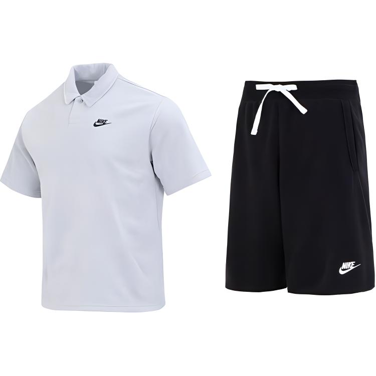 Nike Однотонная удобная рубашка поло с коротким рукавом и завязками, повседневный спортивный костюм для мужчин DX0740-012+DX0767-010 M
