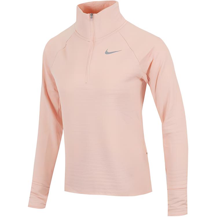 Nike Футболка с логотипом, воротником-стойкой, полумолнией и длинным рукавом, женская, розовая DD6800-800 S