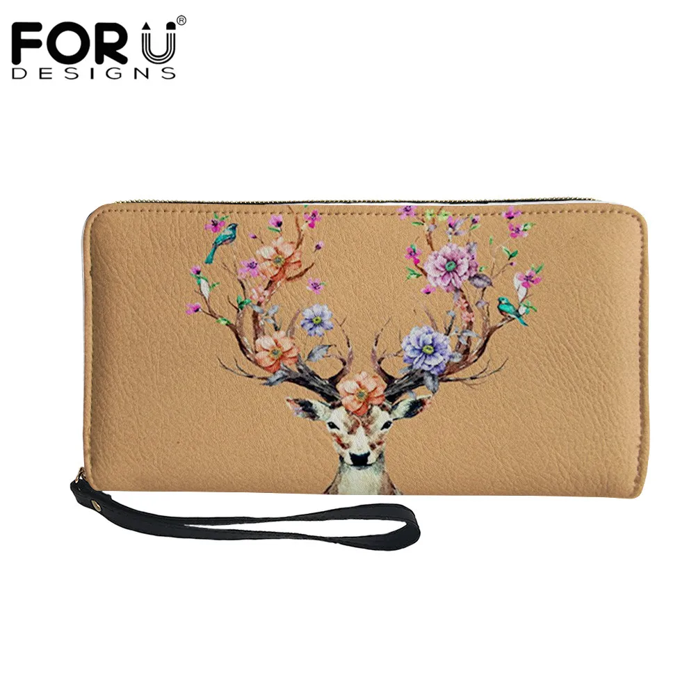 FORUDESIGNS, красивый женский длинный кошелек с рисунком оленя и сливы, роскошный кожаный женский клатч вечерние, Дамский кошелек с ремешком на р...