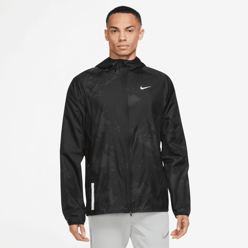 What's a little rain when you are hitting the tarmac in the Nike RPL Run DVN Jacket. Crafted with lightweight, water-repellent woven fabric, this jacket keeps you dry and lets you make the most out of your strides, be it rain or shine. The breathable mesh gussets provide a cool and airy sensation, while the packable pocket at the back lets you stash the jacket when you need to layer down. Sporting an all-over graphic that nods to the street art you pass on your daily journey and a reflective Swoosh logo, the Nike RPL Run DVN Jacket lets you enjoy your city runs in style. Nike RPL Run DVN Jacket features: Hood with an elastic drawcord at the back offers customizable coverage. Darts at the elbow enable a free range of motion. Elastic cuffs provide a snug and secure fit. Two side pockets help stash essentials. 100% polyester. Imported.