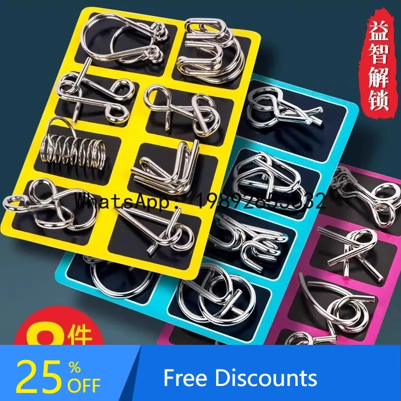 Nine Linked Rings Intelligence Unlocking Ring Iron Ring Unlocking Puzzle Toy Luban Lock Kongming Lock