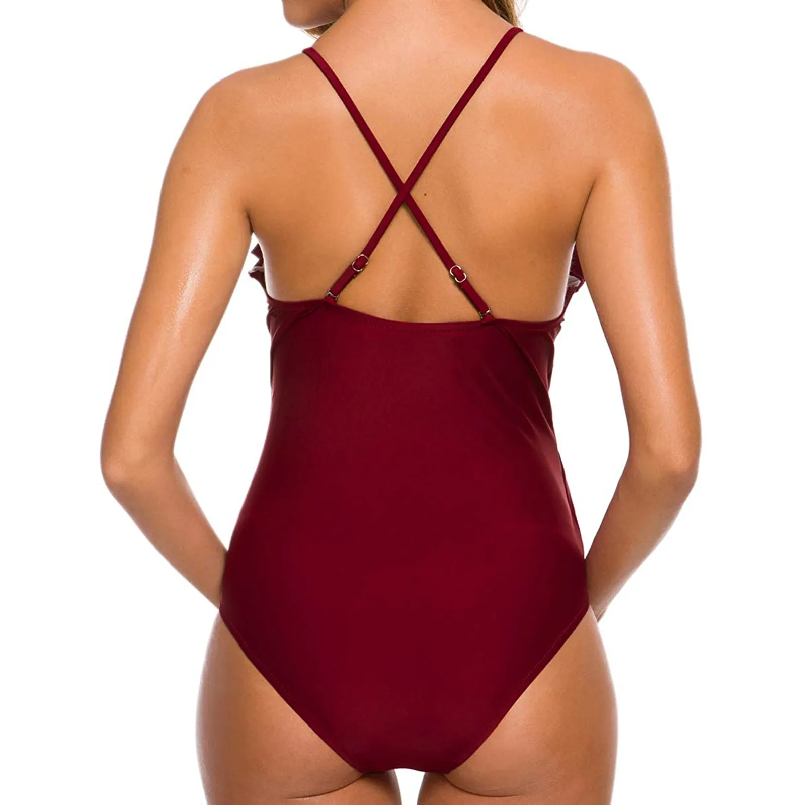 Pregnant Woman Sexy Swimsuit Maternity Solid Backless Bikinis Falbala Ruffle Beachwear New Summer Women One-piece Swimming Suit
