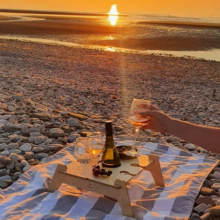 Tiitsoty Personalised Portable Outdoor Wooden Table Personalized Wine Tray Custom Low Wooden Folding Prosecco Server