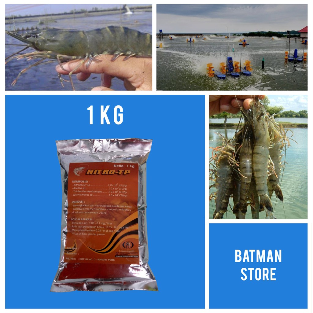 Nitro TP merupakan inokulum microba yang cocok digunakan untuk budidaya udang dan menjaga kualitas air untuk budidaya udang, yang berisi bakteri Bacillus pumilus, Bacilus megaterium, Thiobacilus denitrificans, Nitrosomonas sp dan Nitrobacter sp.