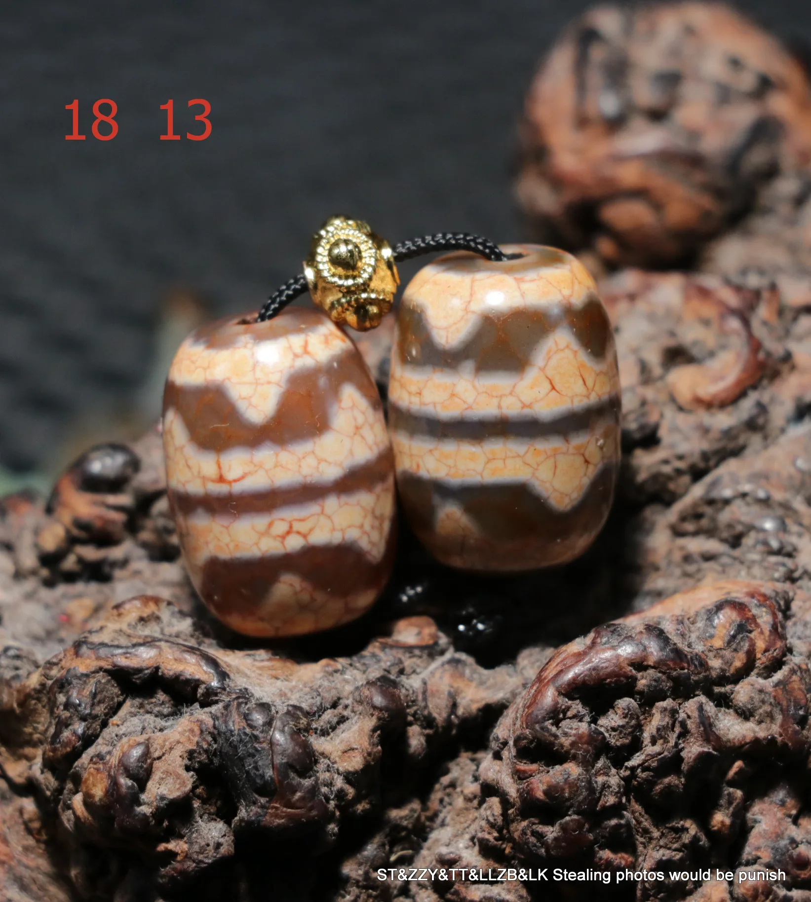 No.210402A4 пара волшебных мощностей Тибетский Старый Агат кровавые вены тигровый зуб в форме ведра