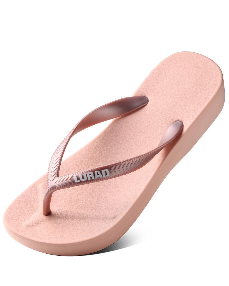 Non Slip Toe Post Beach Wedge Flip Flops, Pink