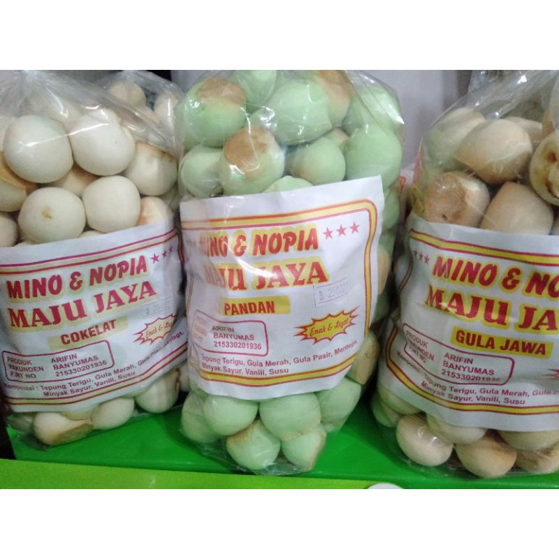 Nopia makanan ringan dengan aneka rasa seperti gula Jawa,coklat dan pandan.Tersedia ukuran 250gram,500gram dan 1000gram