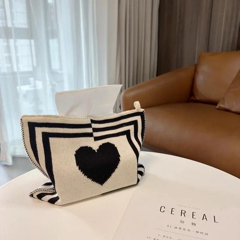 Nordic Ins Сердцевидный узор Вязаная сумка для салфеток Гостиная Настольная коробка для салфеток Хранение бумаги Настольный декоративный чехол для салфеток Коробка для бумаги