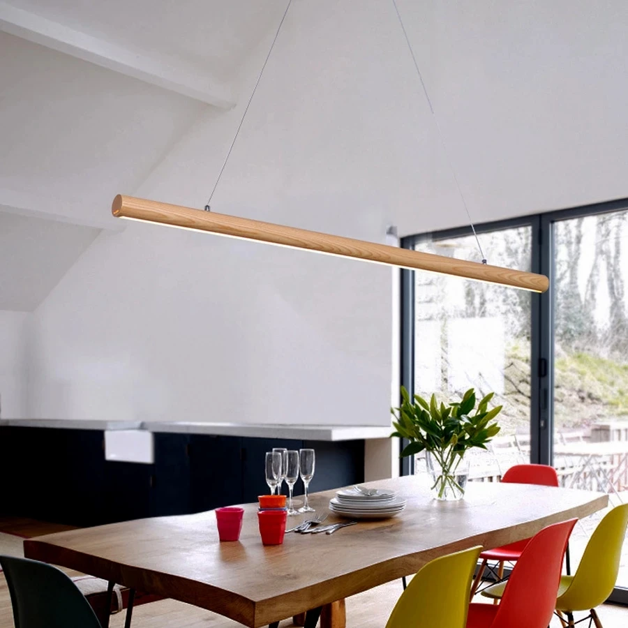 Nordic LED, деревянный подвесной светильник, длинный подвесной светильник для столовой, кухни, бара, домашний декор, потолочный Регулируемый подвесной светильник