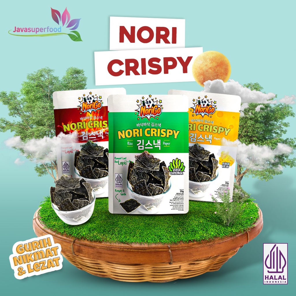 Nori Crispy merupakan cemilan rumput laut dengan kulit lumpia. Nori Crispy cocok untuk dijadikan teman ngemil untuk beraktivitas, seperti menonton TV, belajar dan bersantai bersama keluarga serta teman.