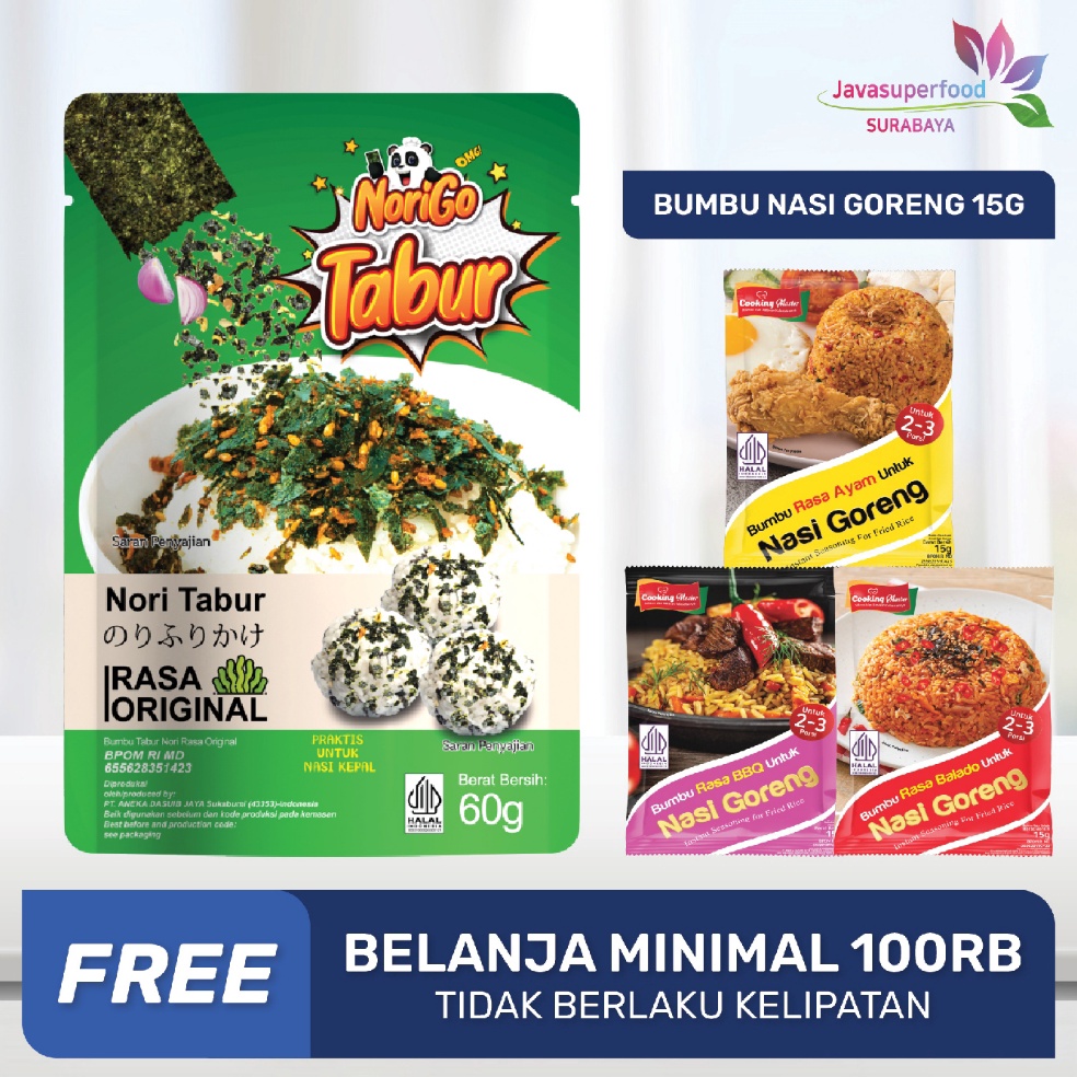Nori Tabur Java Super Food adalah Nori Tabur yang terbuat dari bahan - bahan yang berkualitas se memiliki rasa yang enak dan lezat.