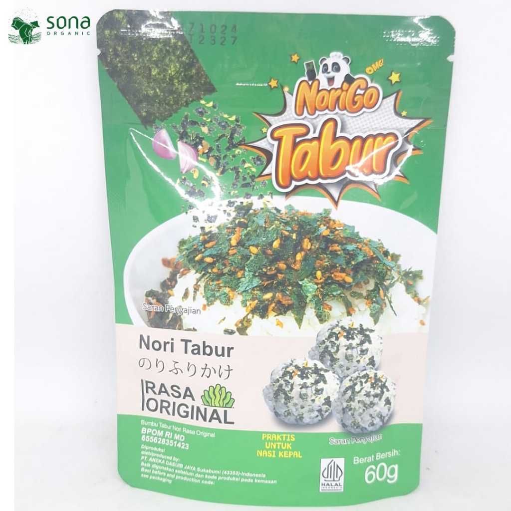 Nori Tabur Java Super Food terbuat dari perpaduan rumput laut panggang, bawang goreng dan wijen yang digunakan sebagai tambahan atau taburan untuk menu makanan.
