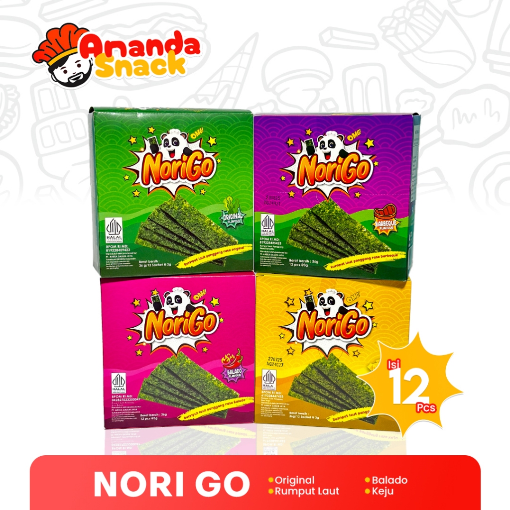 NoriGo Snack Rumput Laut - Makanan Ringan Rumput Laut 1 Box Isi 12 Pcs