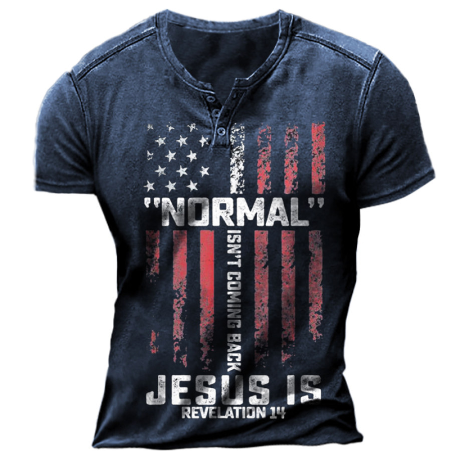 tees & shirts,normal isn't coming back but jesus is revelation 14 men henley tee