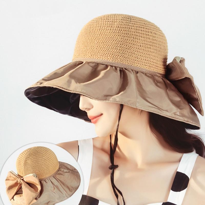 Northwood Летняя солнцезащитная виниловая пляжная шляпа с большими полями, женская соломенная шляпа для защиты лица, складная шляпа рыбака с бантом 58 cm дубильная кора