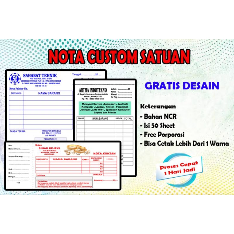 CETAK NOTA CUSTOM SATUAN