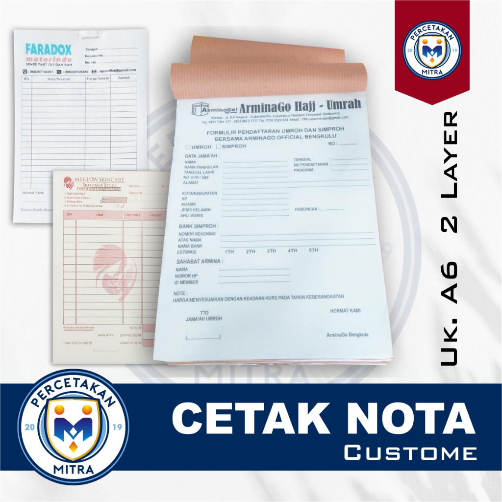 Nota 2 layer isi kertas NCR pink dan putih dengan harga Rp. 175.000/rim & free design