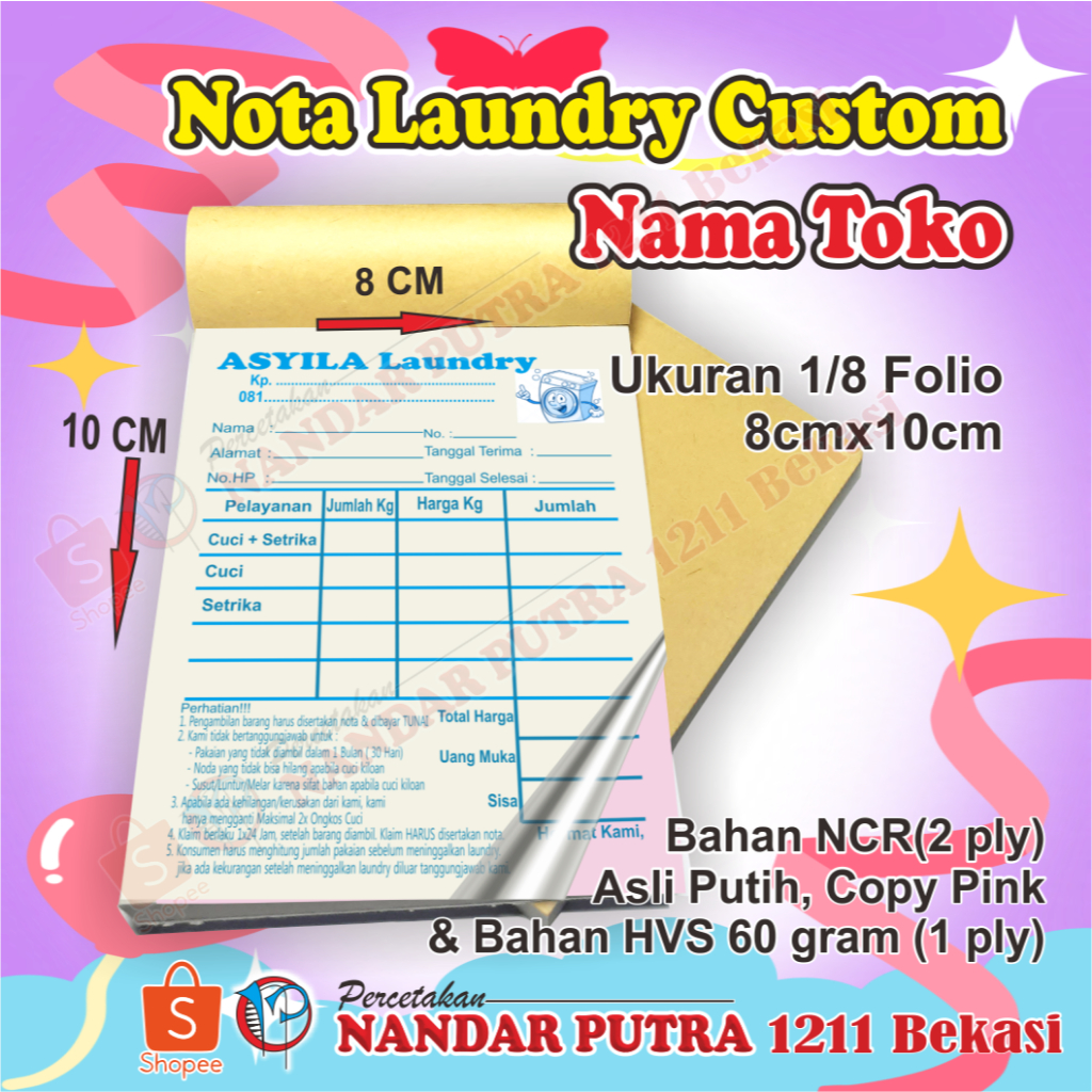 Nota Laundry Custom/Nota Laundry Kecil Custom 1PLY & 2PLY