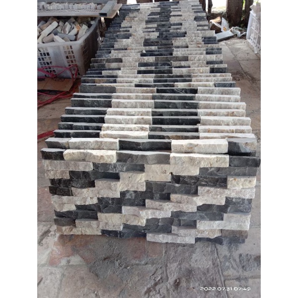 Wallcladding untuk mempercantik dinding terbuat dari batu alam, ukuran 20x40, tersedia bermacam motif lainnya, request motif juga bisa.