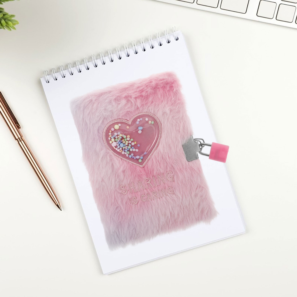 Note Book Girl'S Diary Kids Secret Journal Key Heart Soft Cover Pink Pattern Notebook Fuzzy Writing