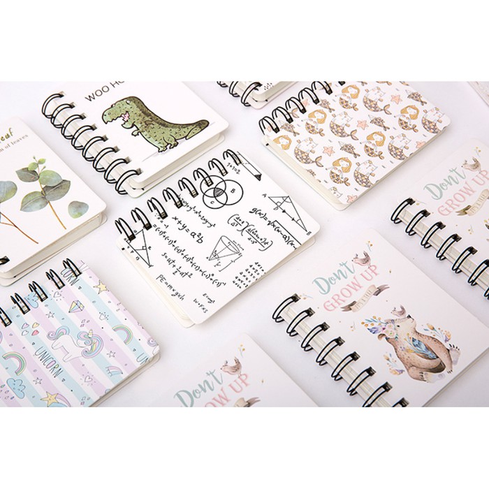 Note book mini spiral animal and cute things ini hadir dalam banyak pilihan variasi motif. Motif-motifnya lucu semua. Sampul buku hard cover, kertas bergaris, ukuran kecil, mudah dibawa.