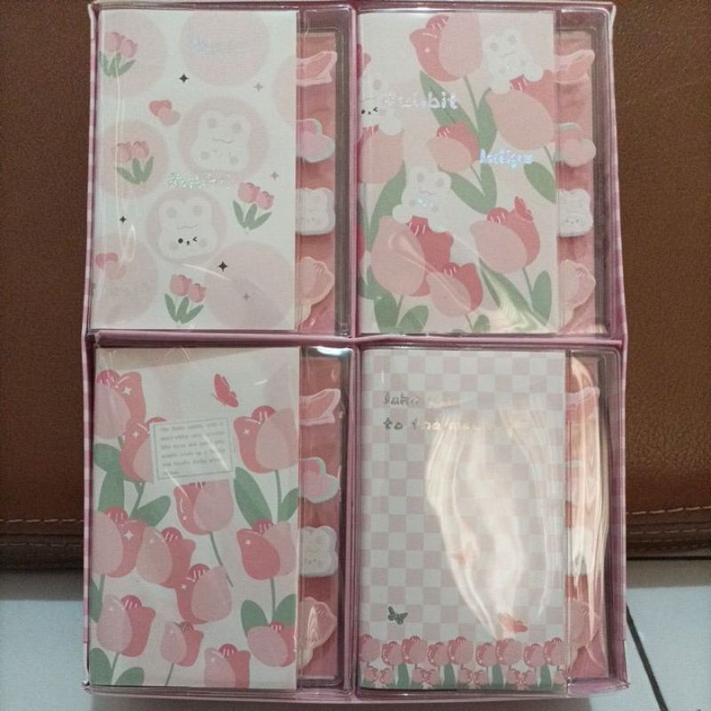 note mini motif bunga tulip pink
