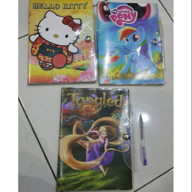 NoteBook / Diary A5 Kancing + Pulpen KITTY PONY TANGLED