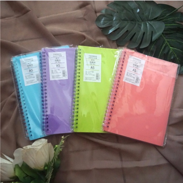 Notebook ukuran A5 dengan warna warna pastel yang cantik, warna loose leaf mengikuti warna cover lucu banget , cover terbuat dari plastik yang tebal dan kokoh isinya ada 60 lembar