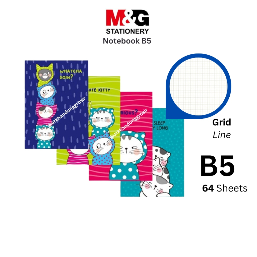 Notebook Grid B5 M&G So Many Cat #APYSLZ06 Buku Kotak Kecil Note Book Cover PVC Grid Line