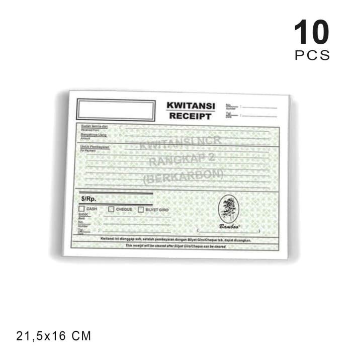 Bamboo Kwitansi Buku adalah buku kwitansi yang terbuat dari bahan kertas yang berisi 50 Sheet. Kwitansi ini banyak digunakan sebagai bukti pembayaran untuk penjualan.