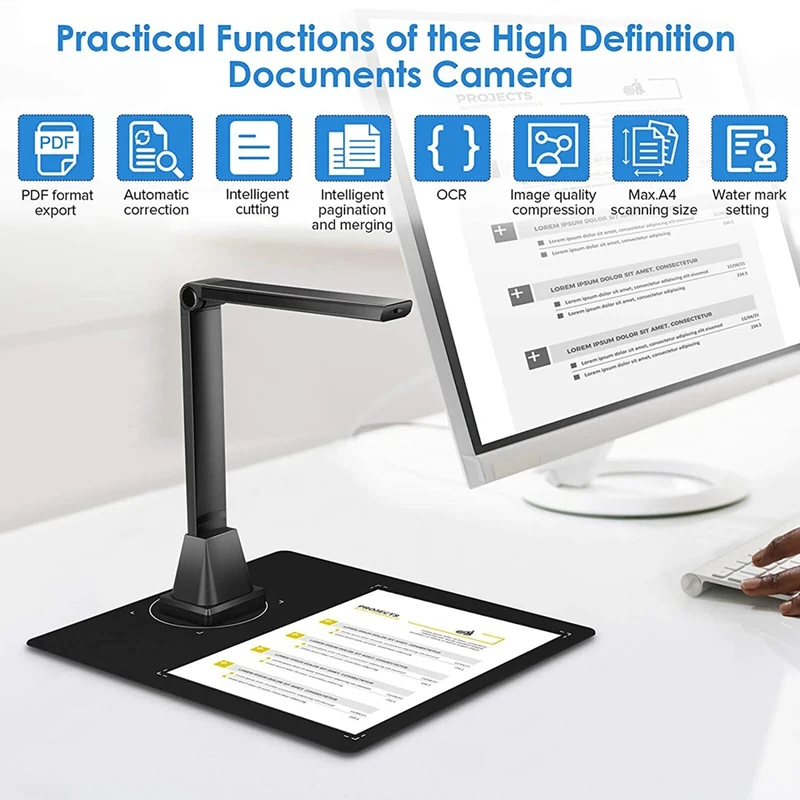 Notebook Computer Document Camera, A4 Format OCR Function LED Light,Suitable for Long-Distance Learning in the Classroom