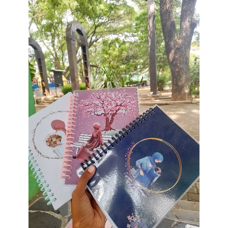 Bahan tebal dengan cover kertas 230 gsm, Desain menarik sesuai keinginan, Isi 50 sheet, Binder bisa dilepas pasang, ukuran A5
