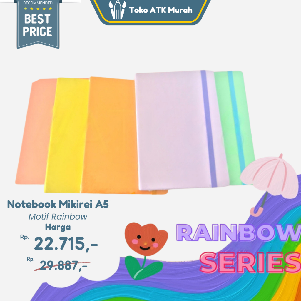 Notebook Hardcover Journal Pattern Spiral Line Mikirei Motif Rainbow