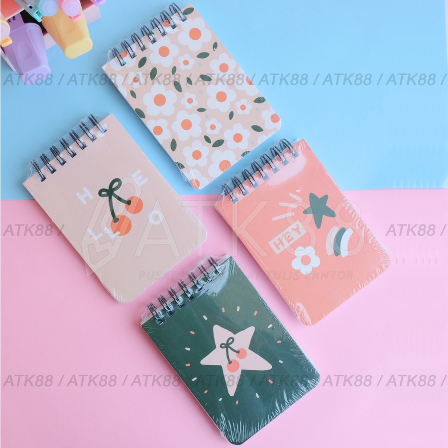 Notebook Mikirei Ring Spiral Flip Up Pattern Ruled Line Motif Retro
